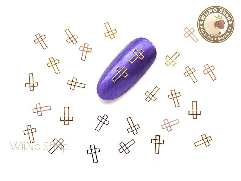 Gold Cross Ultra Thin Nail Art Metal Decoration - 25 pcs