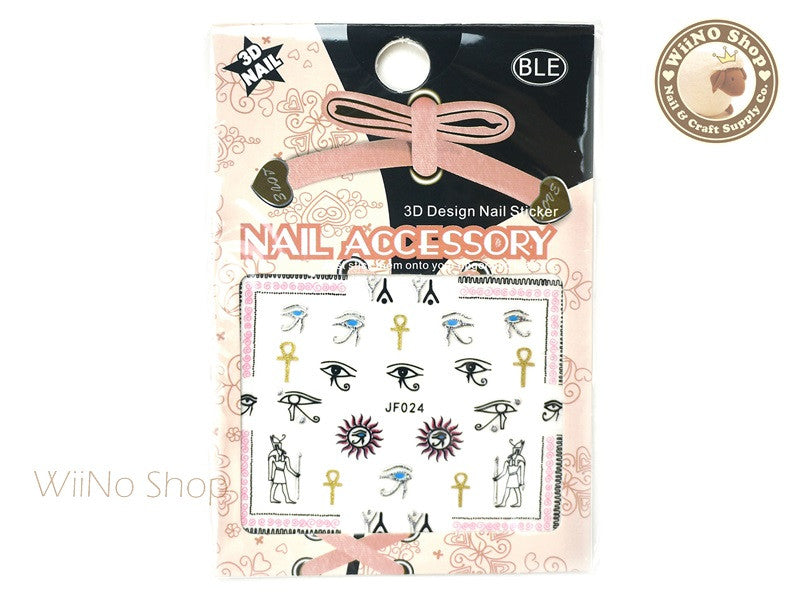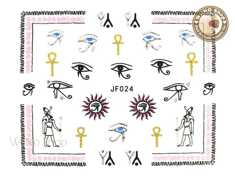 JF024S Silver Egyptian Symbols Adhesive Nail Art Sticker - 1