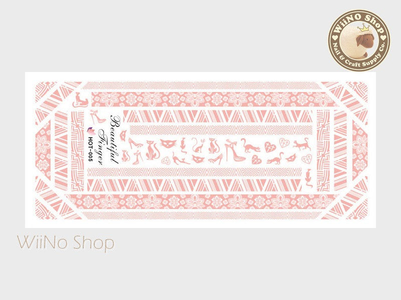 Retro Texture Pattern Pink Water Slide Nail Art Decals - 1pc (HOT-005)