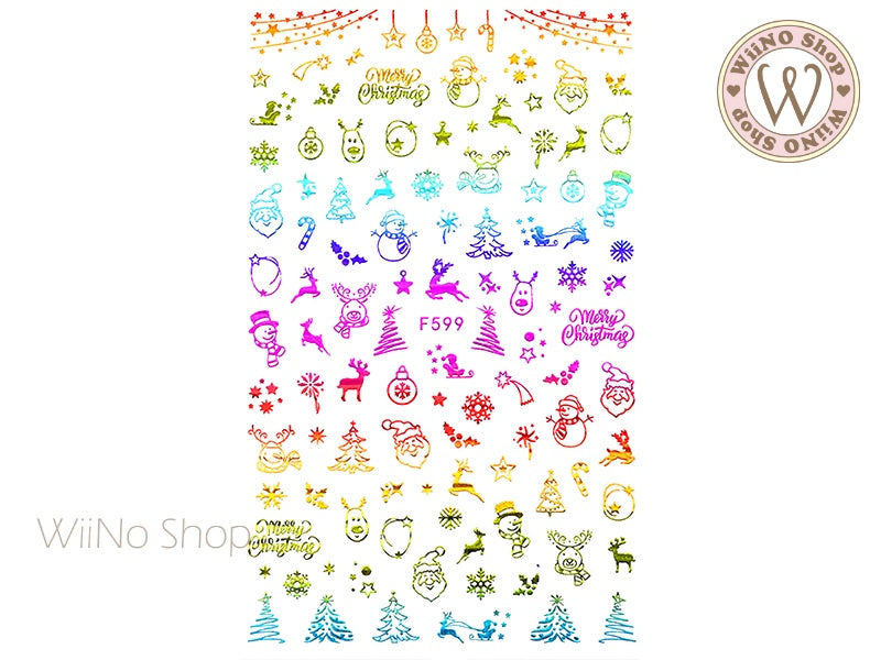 Rainbow Chrome Christmas Adhesive Nail Art Sticker - 1 pc (F599)