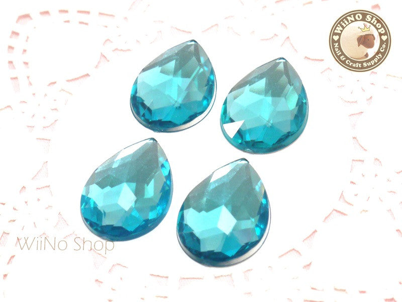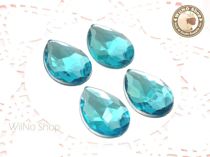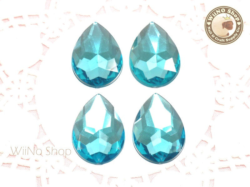 25 x 18mm Blue Aquamarine Pear Drop Flat Back Acrylic Rhinestone - 4 pcs