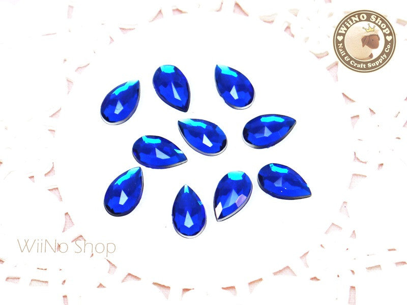 12 x 7mm Royal Blue Cobalt Drop Flat Back Acrylic Rhinestone - 15 pcs