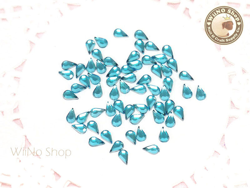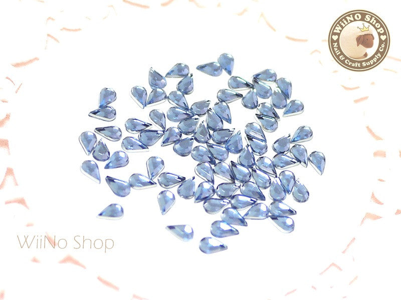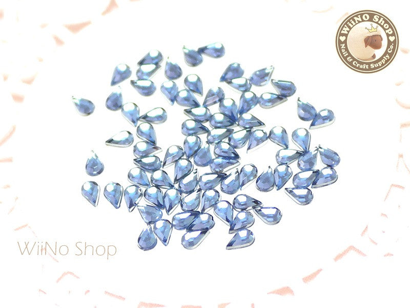5 x 3mm Light Sapphire Blue Drop Flat Back Acrylic Rhinestone Nail Art - 100 pcs
