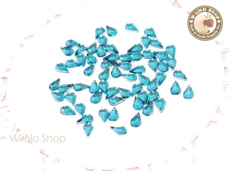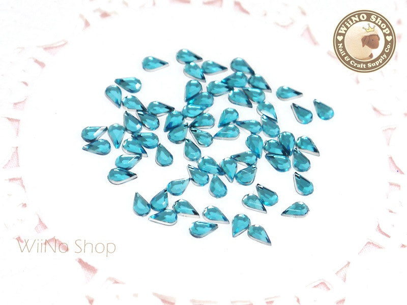 5 x 3mm Blue Aquamarine Drop Flat Back Acrylic Rhinestone Nail Art - 100 pcs