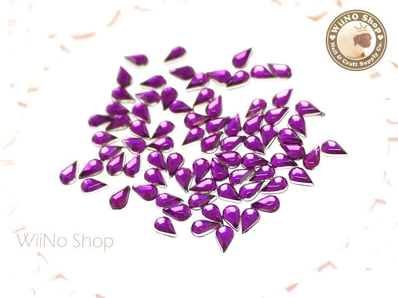 5 x 3mm Purple Violet Drop Flat Back Acrylic Rhinestone Nail Art - 100 pcs