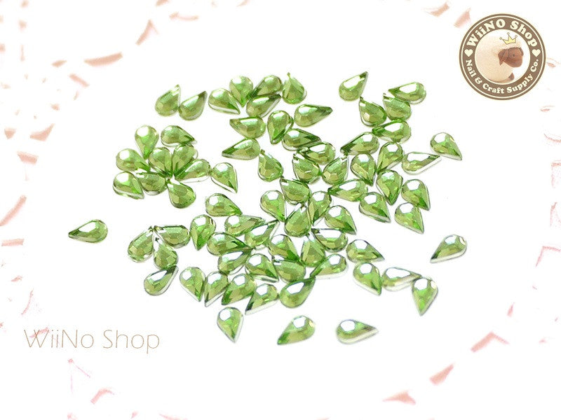 5 x 3mm Light Green Perdot Drop Flat Back Acrylic Rhinestone Nail Art - 100 pcs