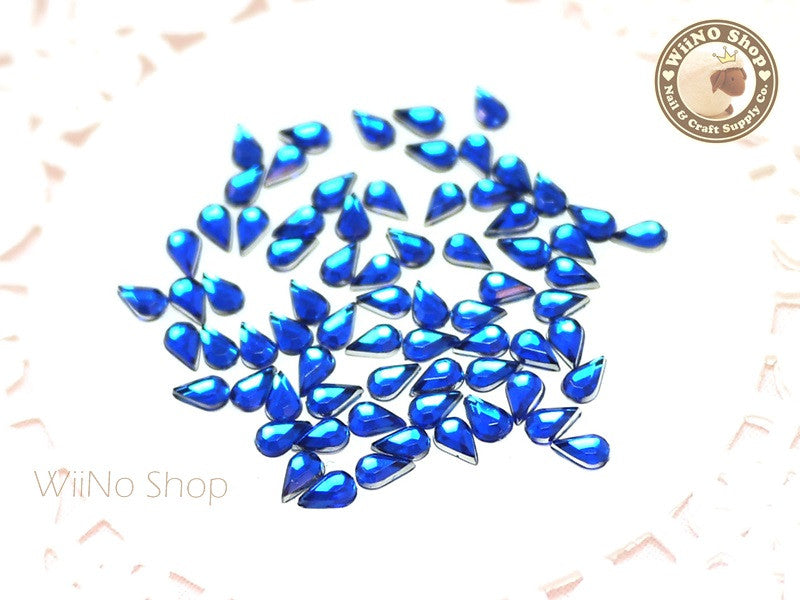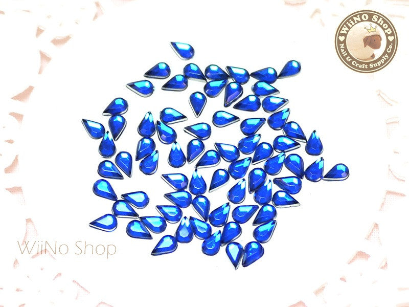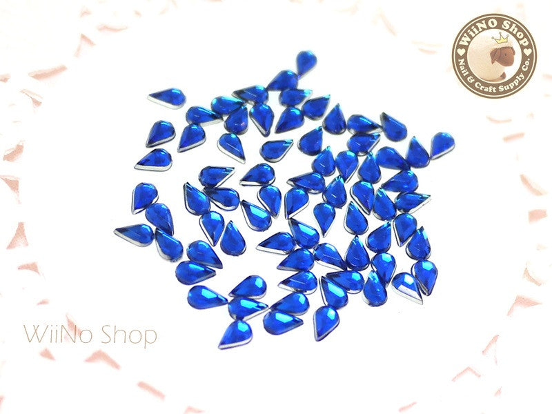 5 x 3mm Royal Blue Cobalt Drop Flat Back Acrylic Rhinestone Nail Art - 100 pcs