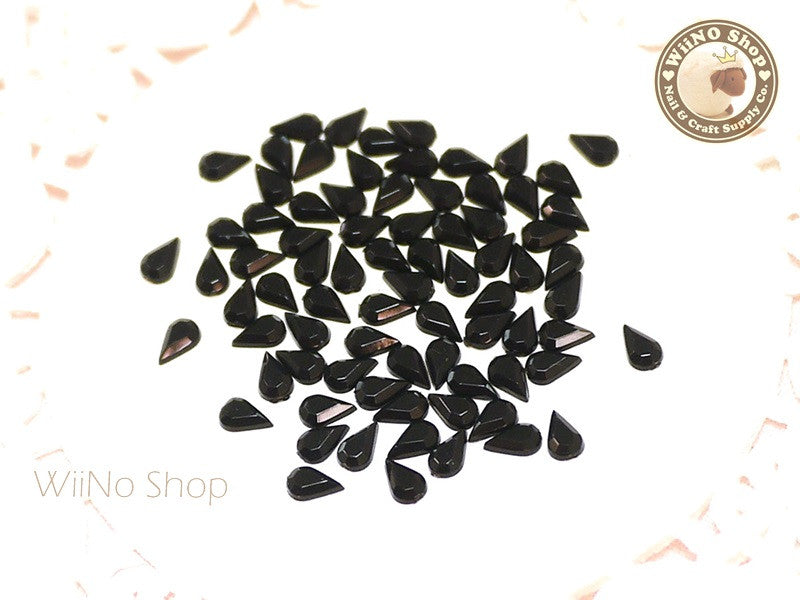 5 x 3mm Black Jet Drop Flat Back Acrylic Rhinestone Nail Art - 100 pcs