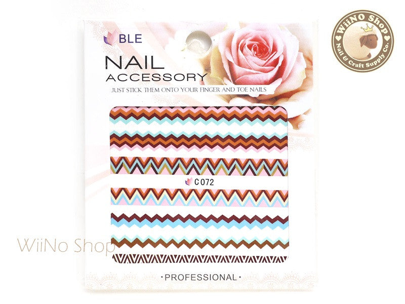 Multi Color Zigzag Pattern Water Slide Nail Art Decals - 1pc (C72)
