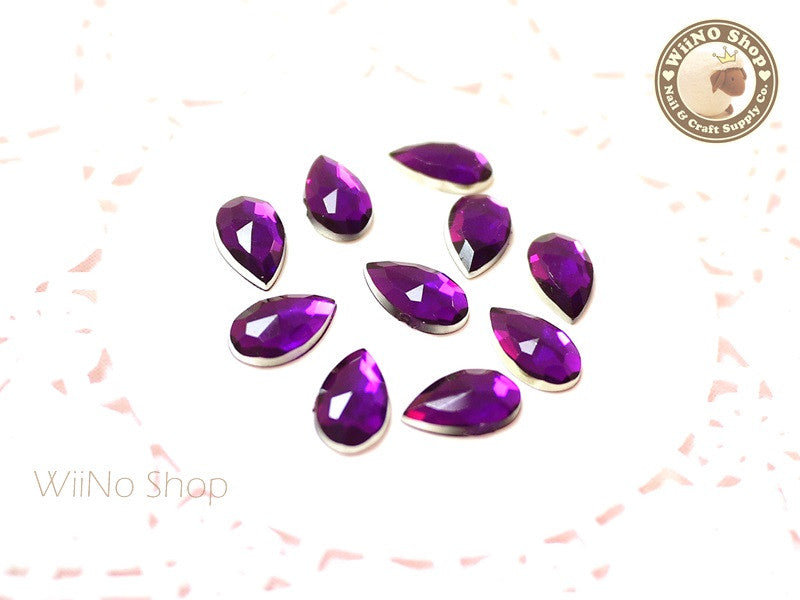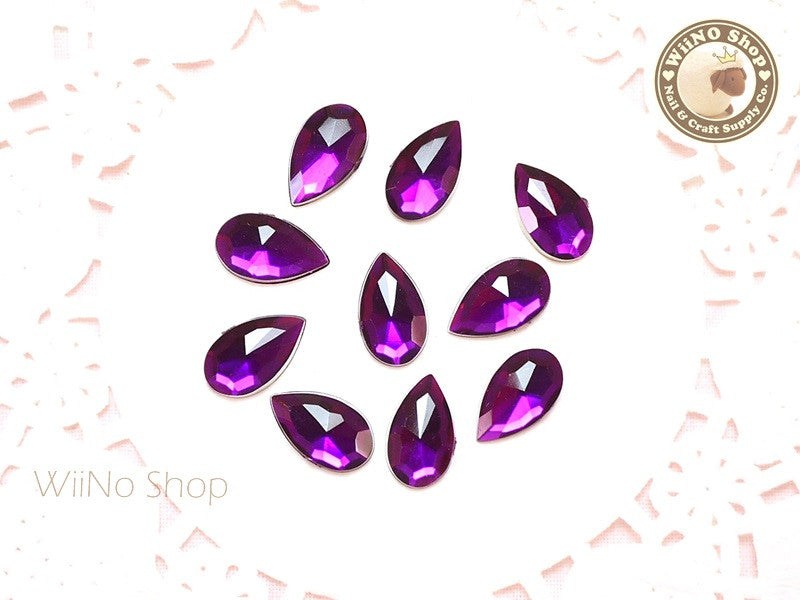 12 x 7mm Purple Violet Drop Flat Back Acrylic Rhinestone - 15 pcs