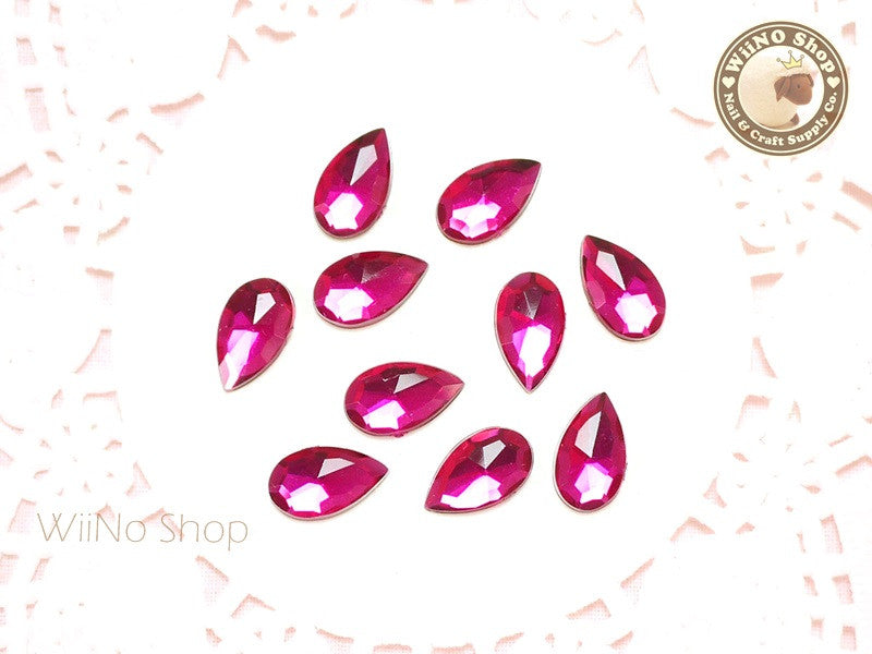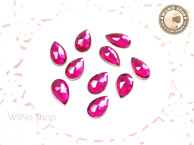 12 x 7mm Fuchsia Hot Pink Drop Flat Back Acrylic Rhinestone - 15 pcs