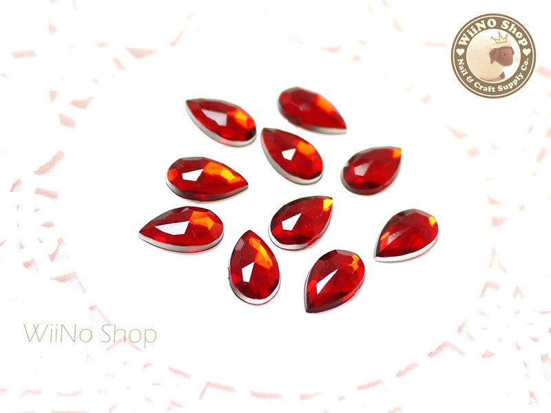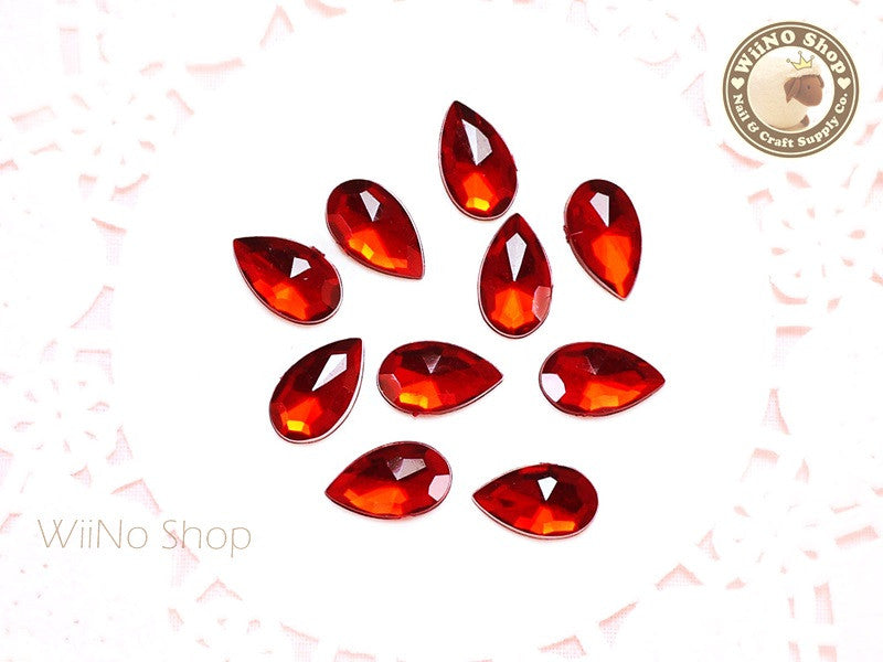 12 x 7mm Red Siam Drop Flat Back Acrylic Rhinestone - 15 pcs