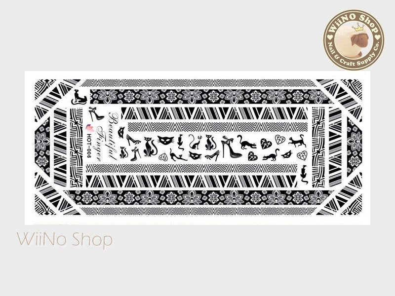 Retro Texture Pattern Black Water Slide Nail Art Decals - 1pc (HOT-006)