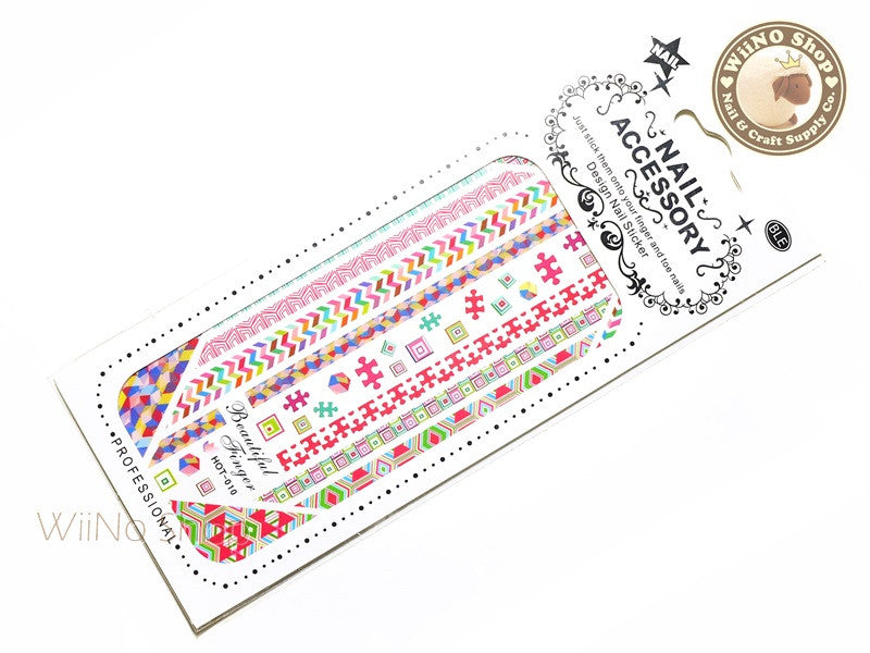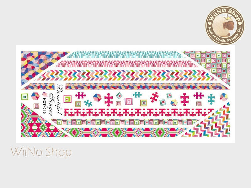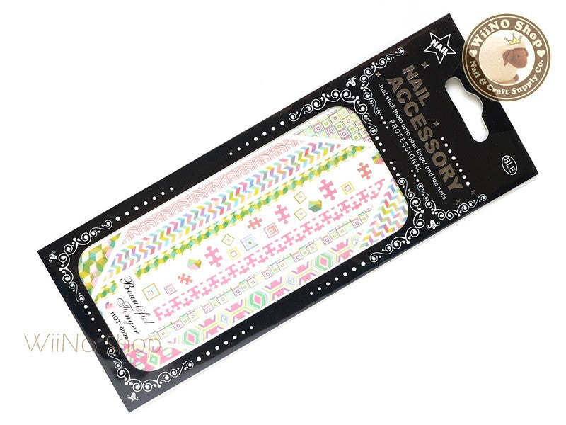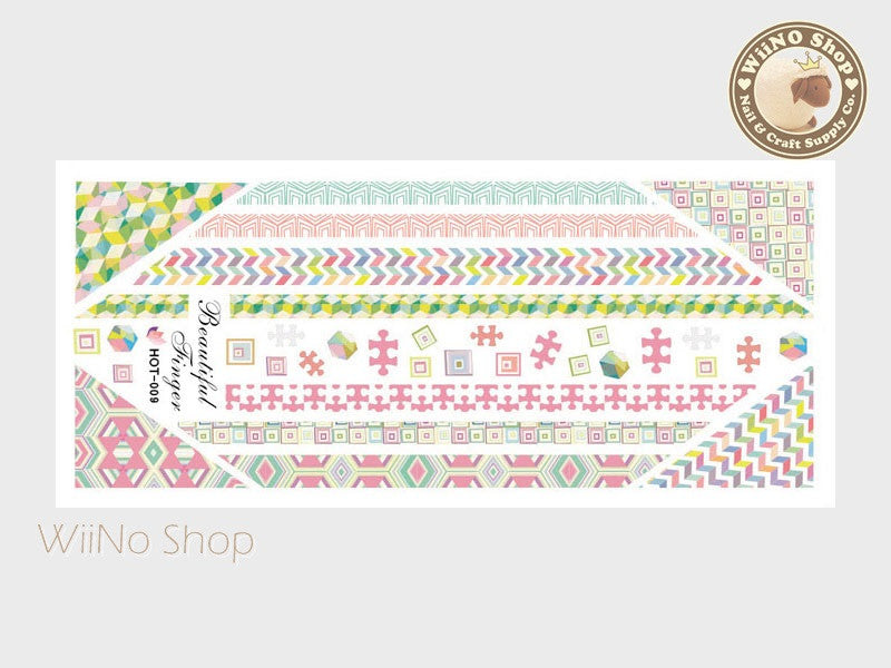 Retro Puzzle Pop Style Pattern Pastel Water Slide Nail Art Decals - 1pc (HOT-009)