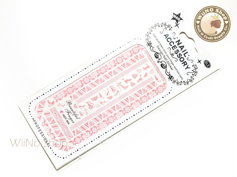 Retro Texture Pattern Pink Water Slide Nail Art Decals - 1pc (HOT-005)