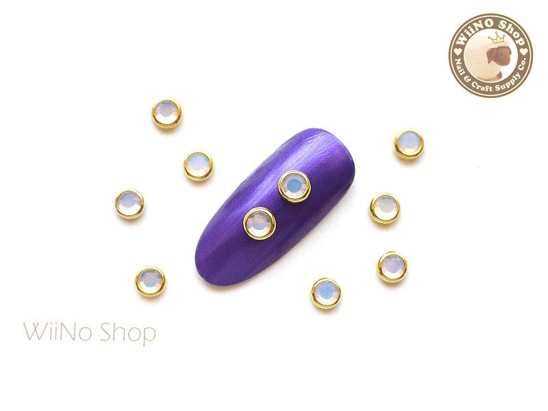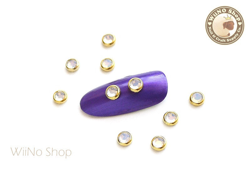 4mm White Opal Crystal Gold Rim Cabochon Nail Art Decoration- 10 pcs