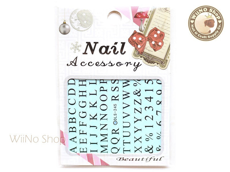 Black Alphabet Letters Water Slide Nail Art Decals - 1pc (DLS-245)