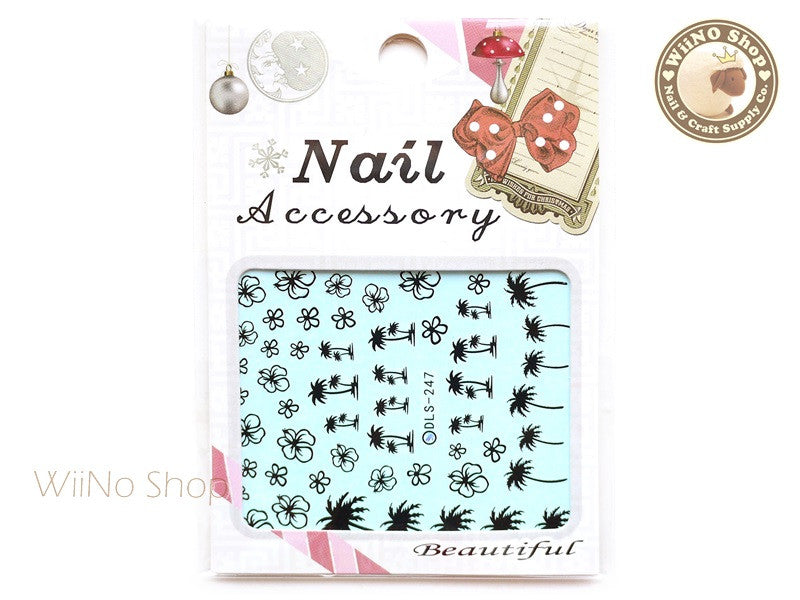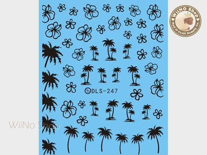Black Palm Tree Hibiscus Water Slide Nail Art Decals - 1pc (DLS-247)