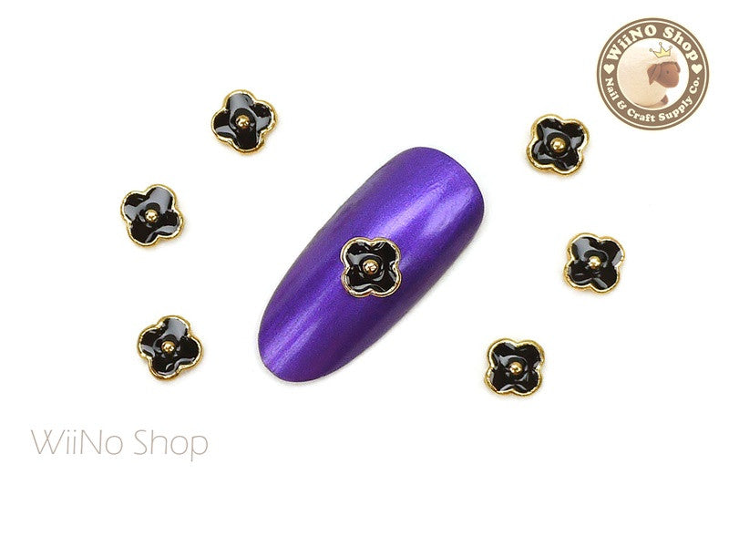 Black Quatrefoil Nail Metal Charm - 2 pcs