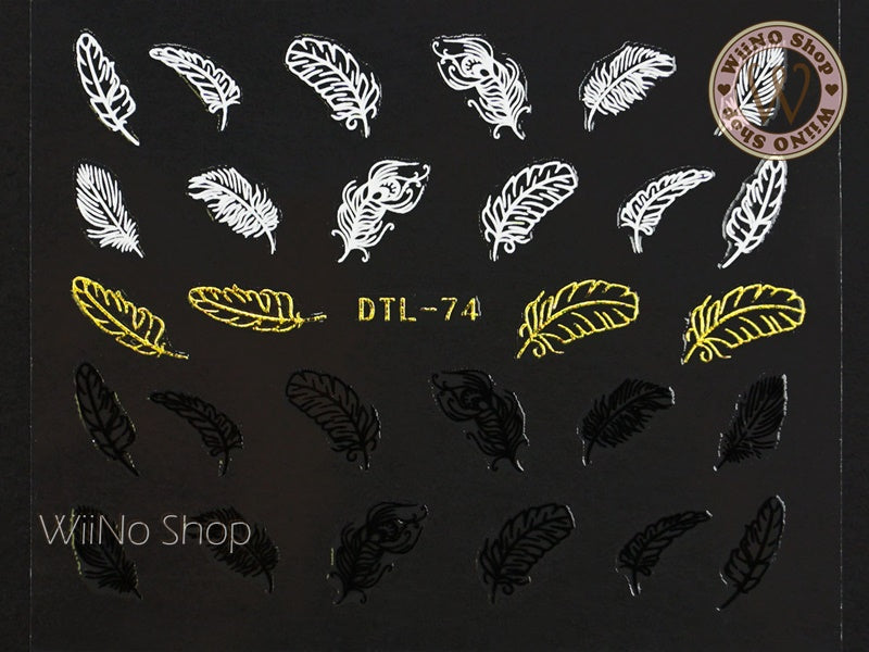 Gold Black White Feather Nail Art Sticker - 1 pc (DTL-74G)