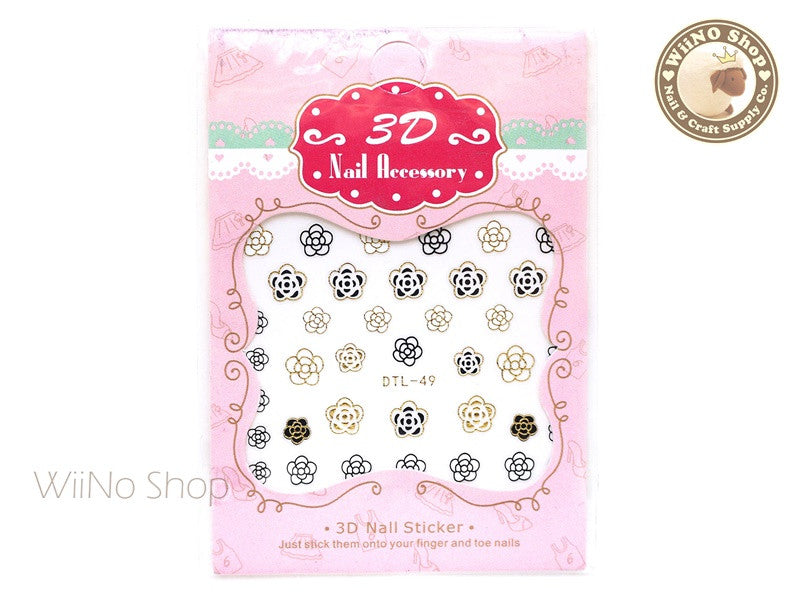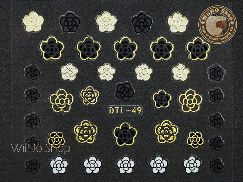 Gold Black White Camellia Nail Art Sticker - 1 pc (DTL-49G)