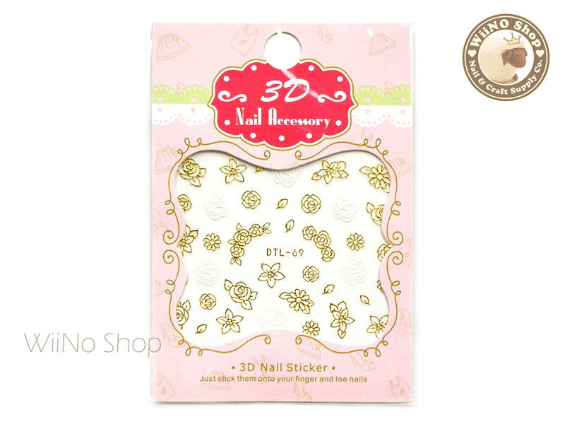 Gold White Flower Nail Art Sticker - 1 pc (DTL-69G)
