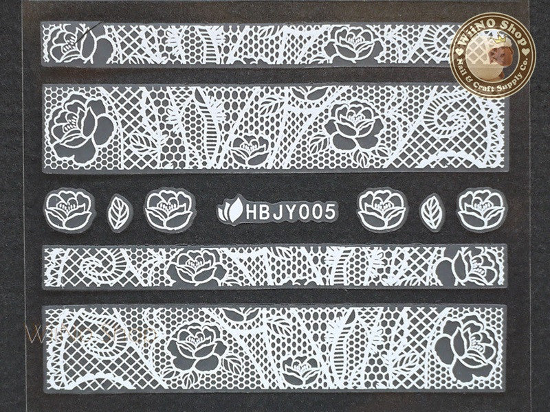HBJY005 White Lace Nail Sticker Nail Art - 1 pc