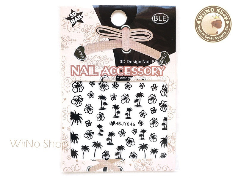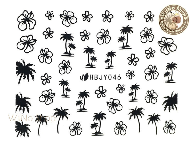 HBJY046 Black Palm Tree Hibiscus Nail Sticker Nail Art - 1 pc