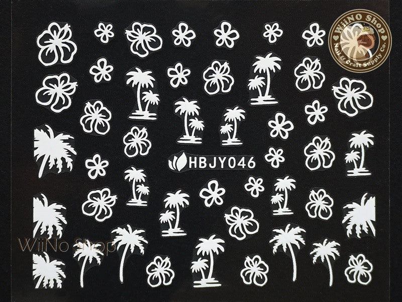 HBJY046 White Palm Tree Hibiscus Nail Sticker Nail Art - 1 pc