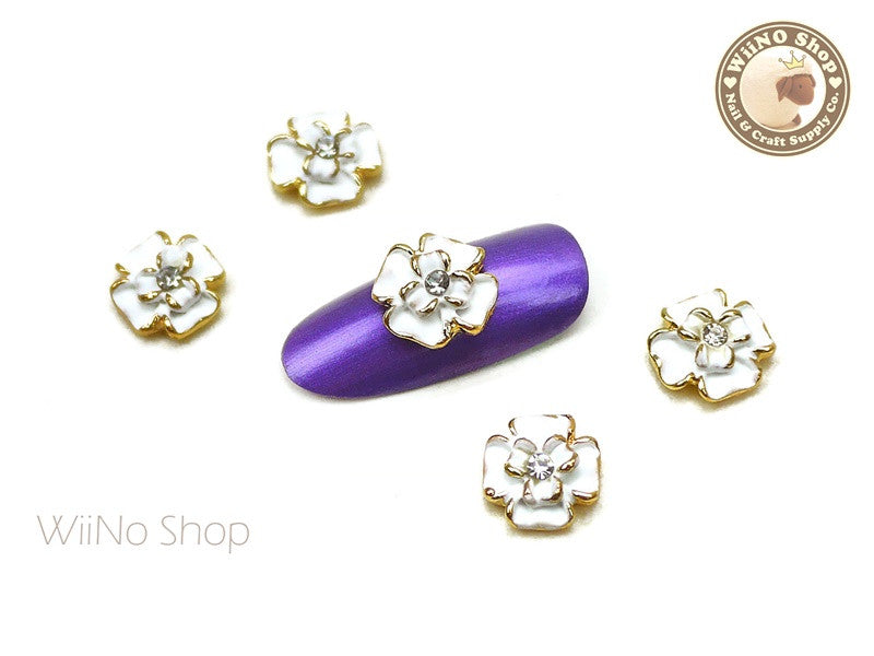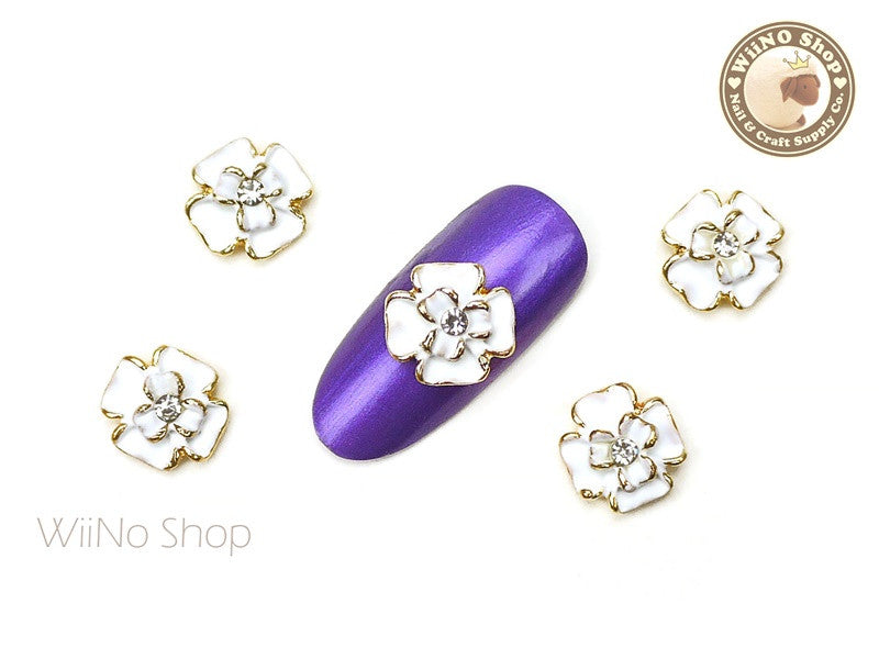 White Camellia Nail Metal Charm - 2 pcs