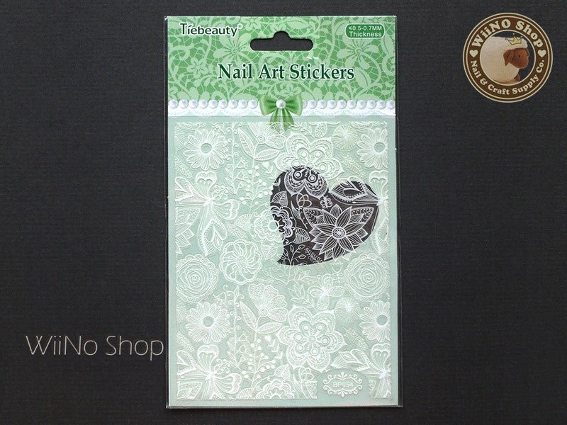 White Floral Pattern Adhesive Nail Art Sticker - 1 pc (BP054W)