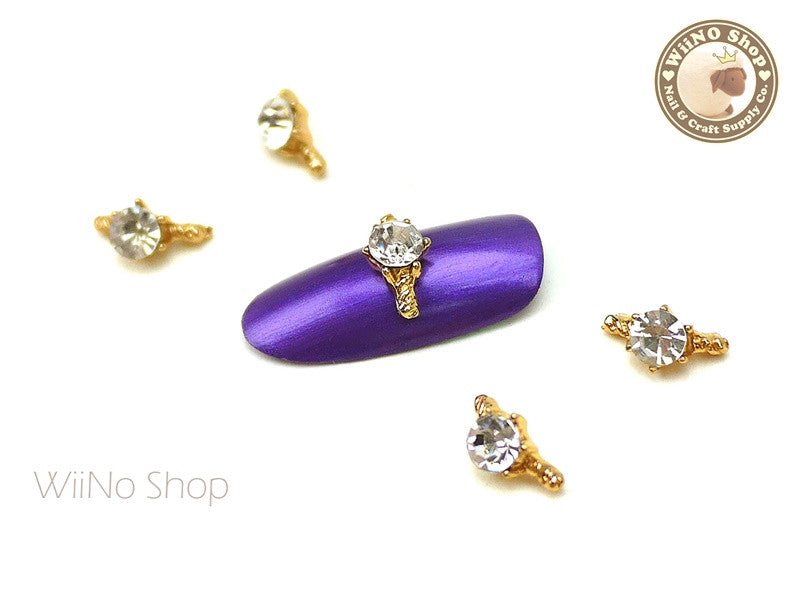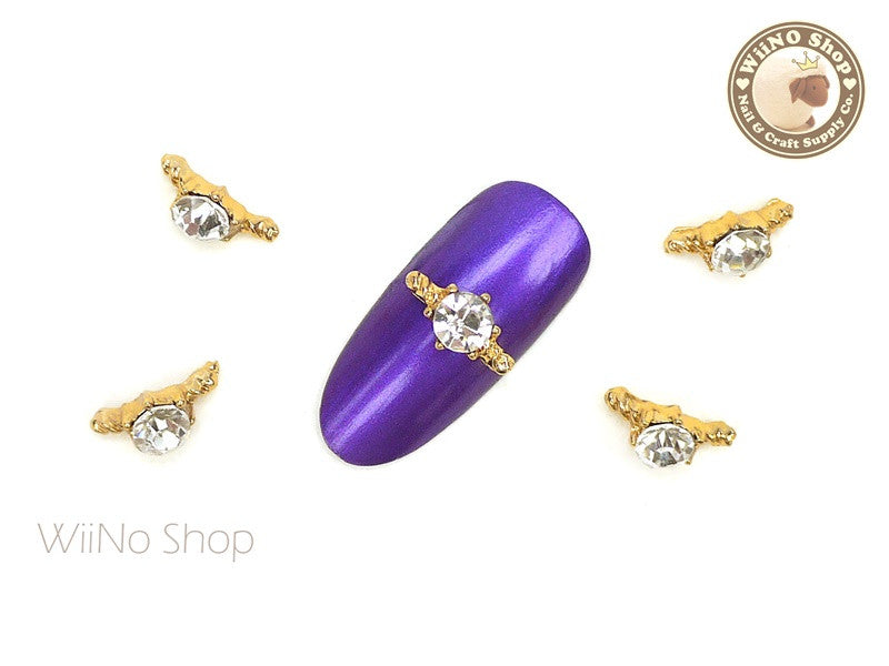 Clear Crystal Gold Ring Nail Metal Charm - 2 pcs
