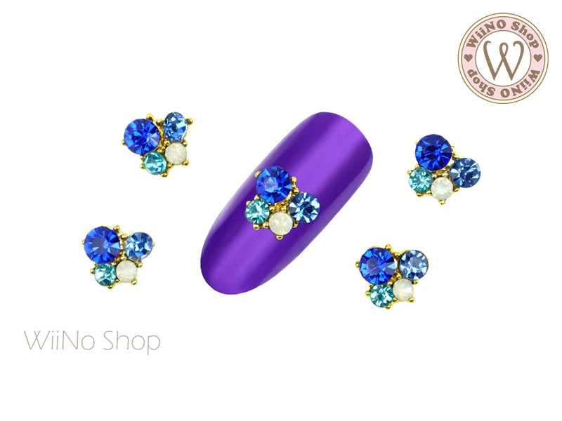 Blue Crystal Small Cluster Nail Metal Charm - 2 pcs