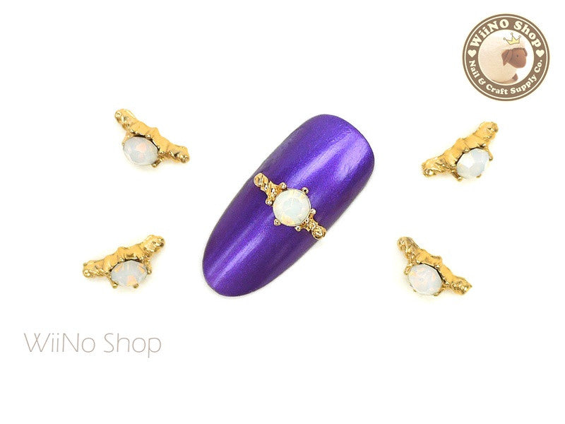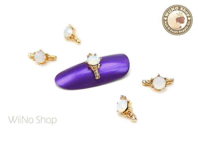 Opal Gold Ring Nail Metal Charm - 2 pcs