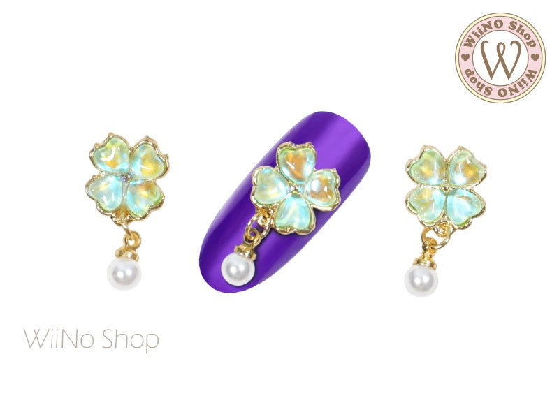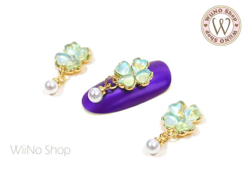 Clover Crystal Pearl Nail Dangle Charm - 2 pcs