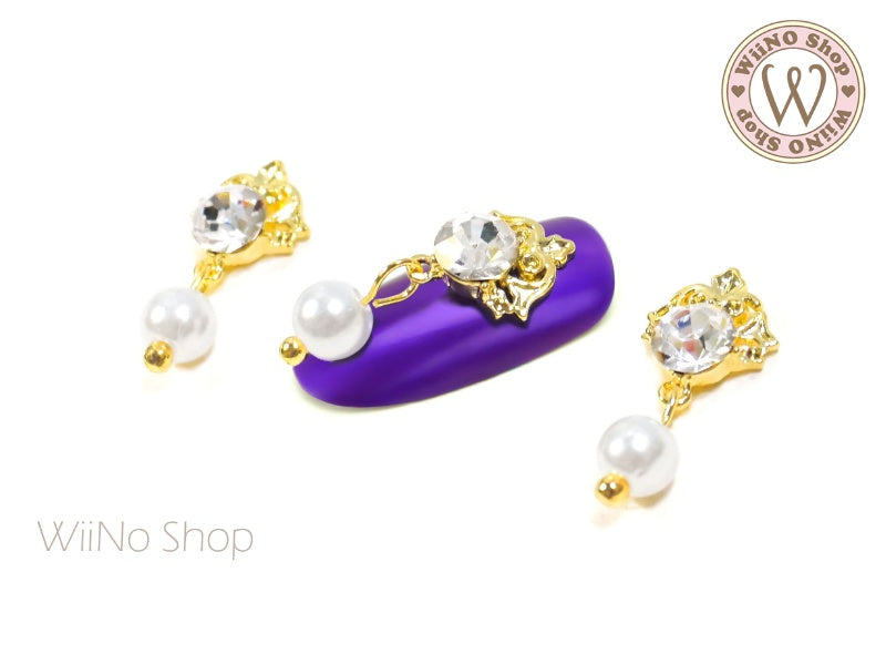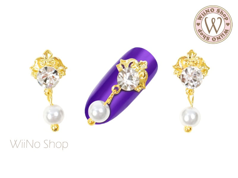 Mira Round Crystal Pearl Nail Dangle Charm - 2 pcs