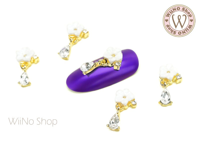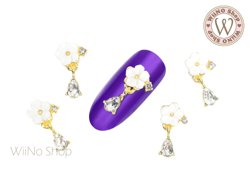 White Flower Crystal Drop Nail Dangle Charm - 2 pcs