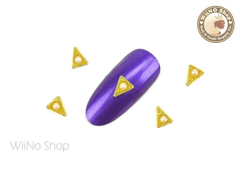 Gold Skinny Triangle with Pearl Nail Metal Charm - 2 pcs