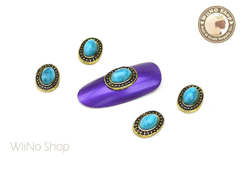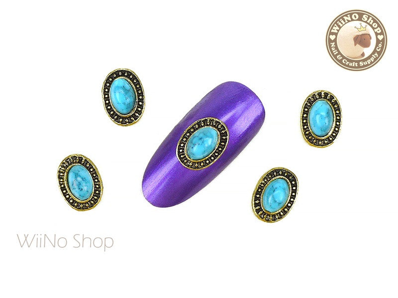 Oval Turquoise Vintage Frame Nail Metal Charm - 2 pcs