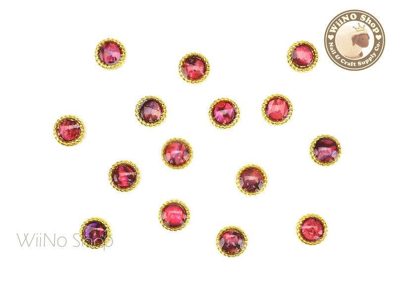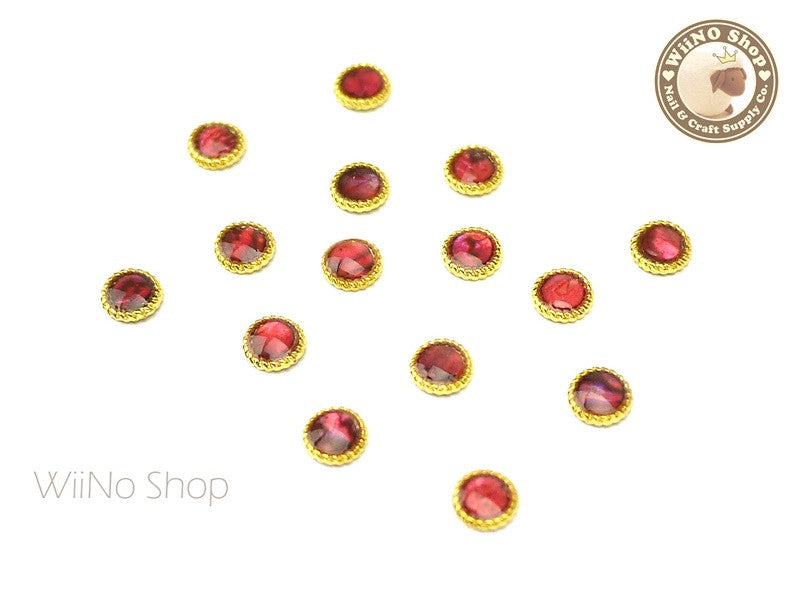 Red Natural Seashell Round Frame Nail Metal Charm - 2 pcs
