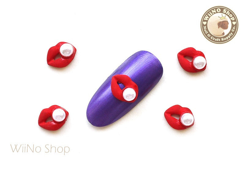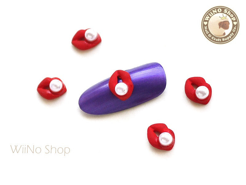 Matte Red Pearl Lips Nail Metal Charm - 2 pcs