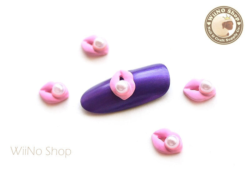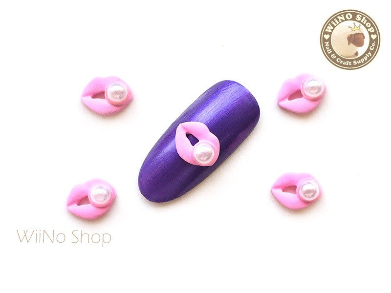 Matte Pink Pearl Lips Nail Metal Charm - 2 pcs