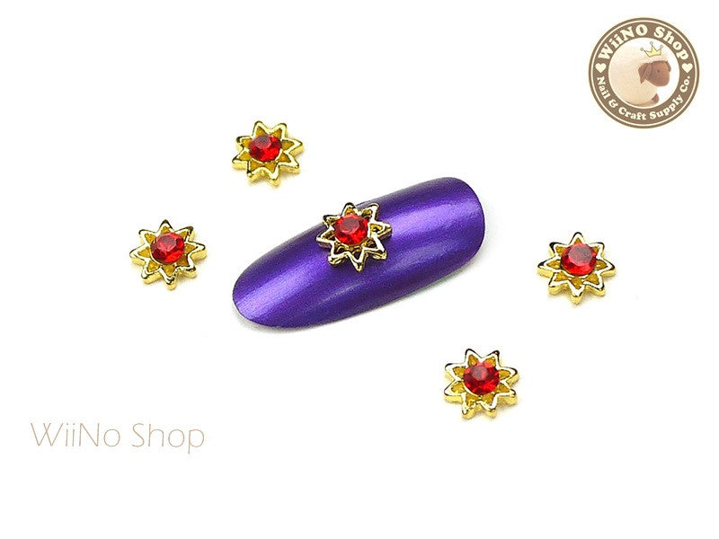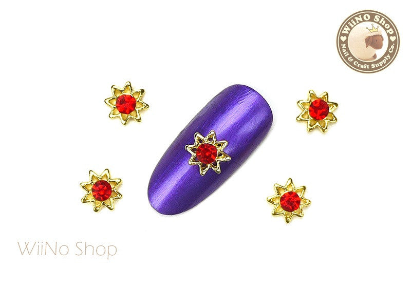 Gold Hollow Sun with Red Crystal Nail Art Metal Charm - 2 pcs
