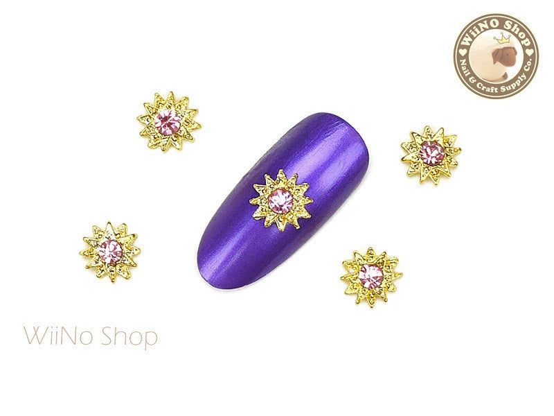 Gold Pattern Sun with Pink Crystal Nail Art Metal Charm - 2 pcs