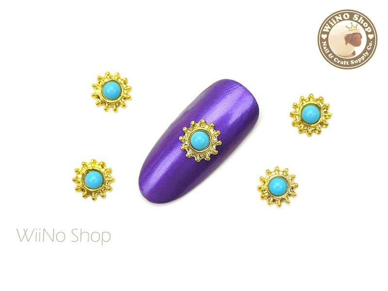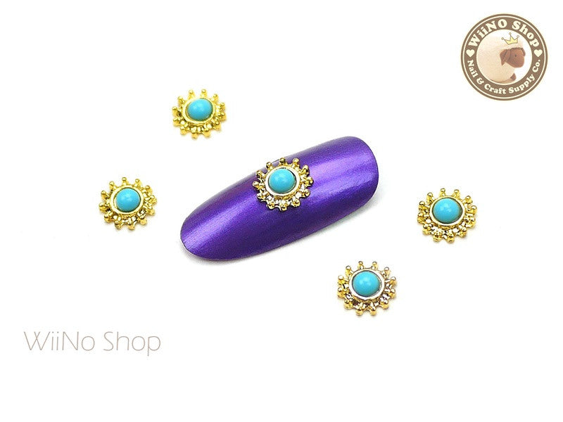 Gold Sun Turquoise Rhinestone Nail Metal Charm - 2 pcs
