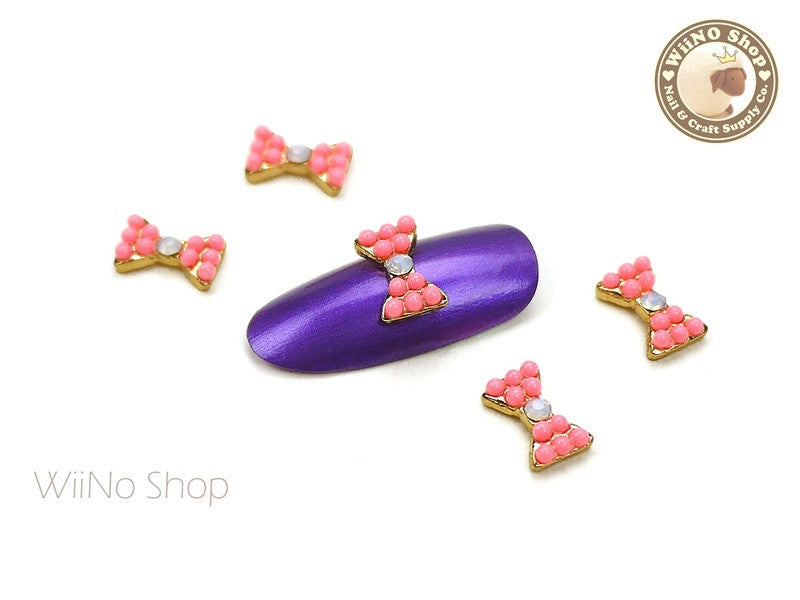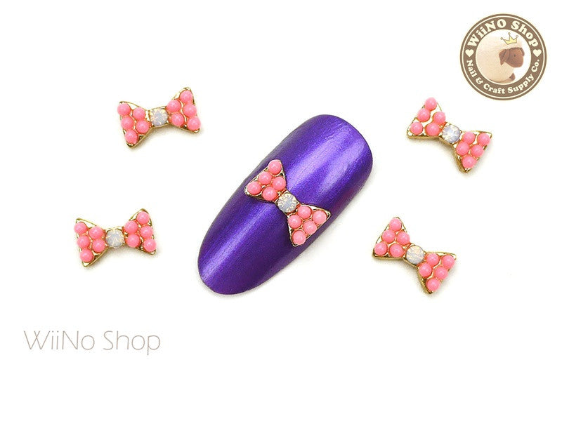 Coral Candy Bow Nail Metal Charm - 2 pcs
