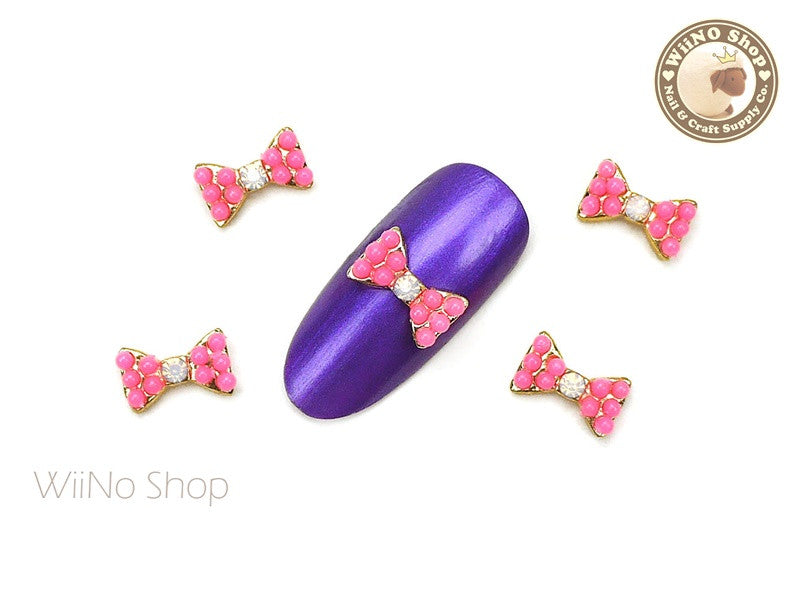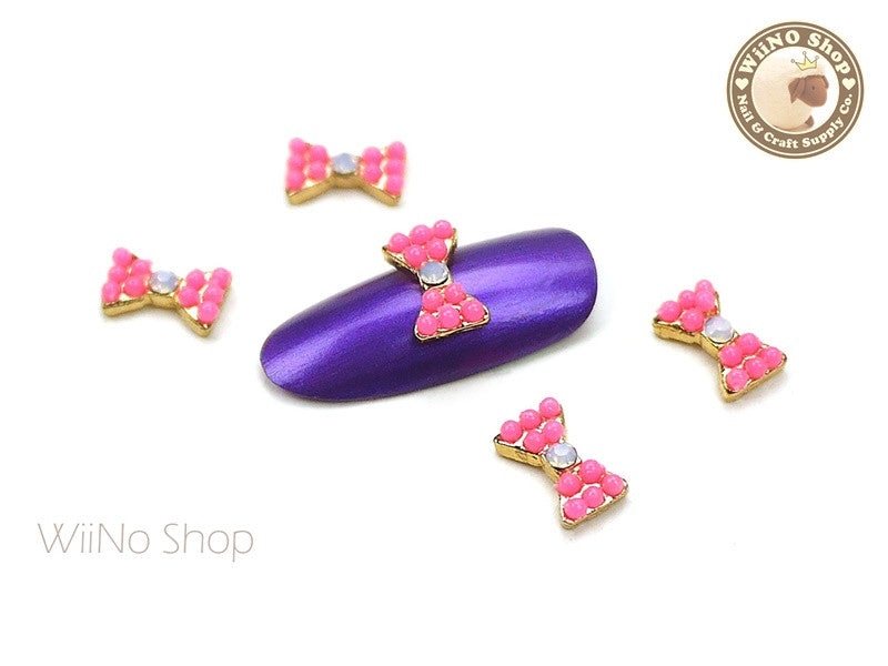 Hot Pink Candy Bow Nail Metal Charm - 2 pcs