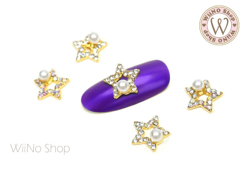 Crystal Pearl Star Nail Metal Charm - 2 pcs