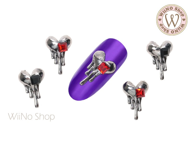 Dripping Heart with Crystal Nail Metal Charm - 2 pcs