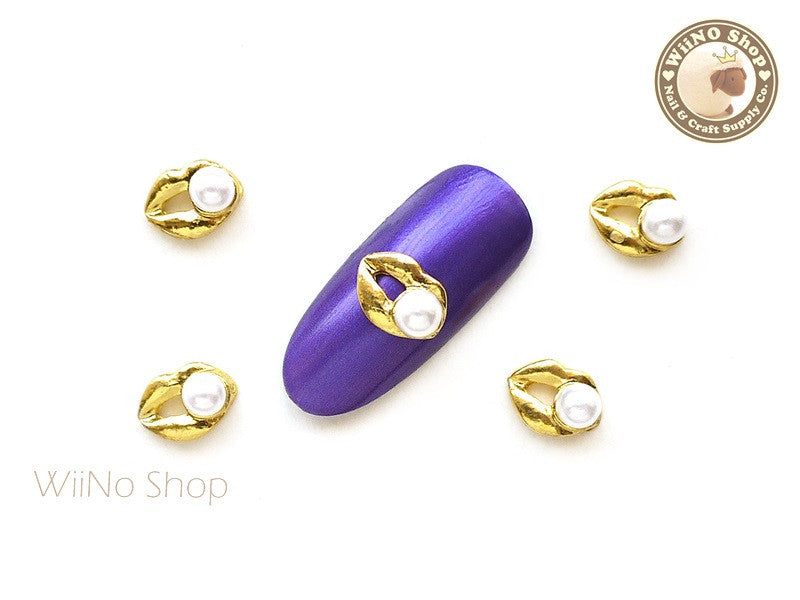 Gold Pearl Lips Nail Metal Charm - 2 pcs